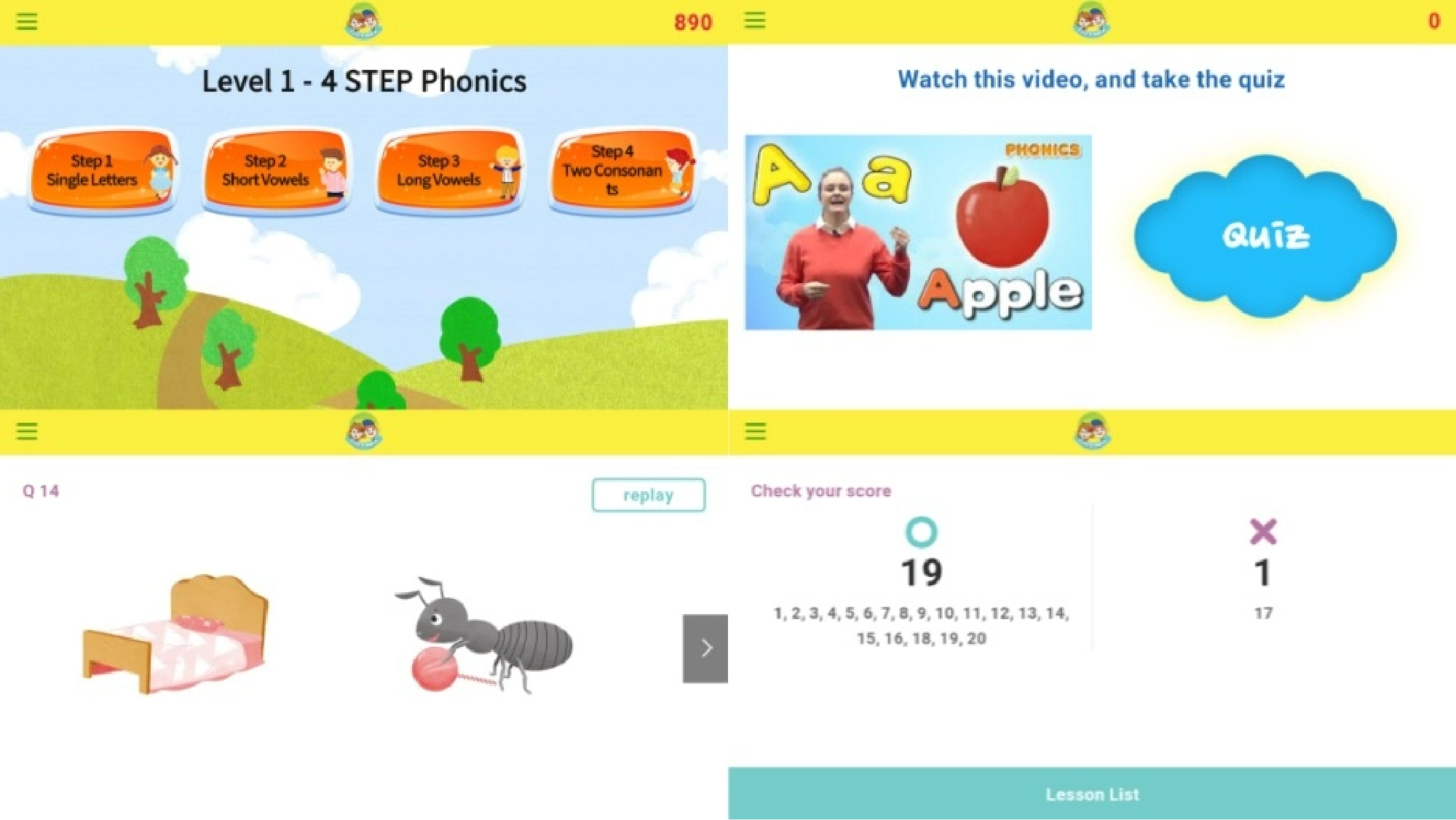 Phonics is a basic course and so a level test is unnecessary. Parents typically assess kid’s level accurate if the kid is in phonics level. Upon subsequent assessment (parents believe double vowels level is appropriate but we find single vowels level is better suited), kid’s level may be adjusted accordingly.